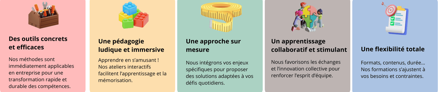 Nous formons les entreprises sur la créativité et l'intelligence collective pour donner aux équipes les outils pour innover ensemble.